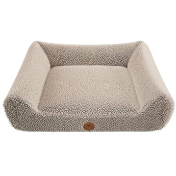 Ekstra blød hundeseng der er betrukket med en flot, hvidt bamsestof der inviterer din hund til ro og afslapning.