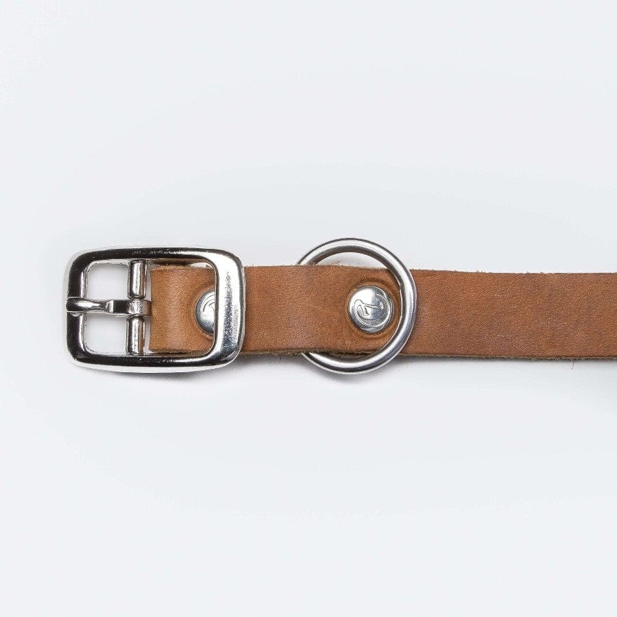 Hundehalsbåndet er fremstillet i et blødt og stærkt læder.