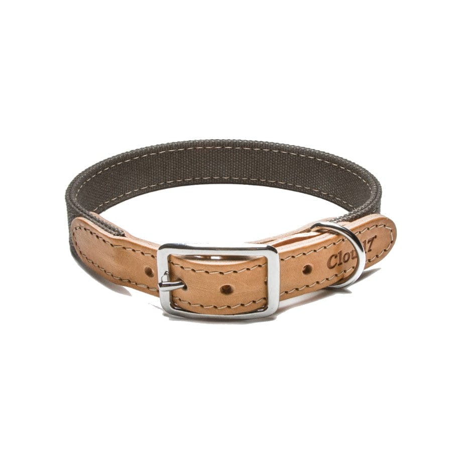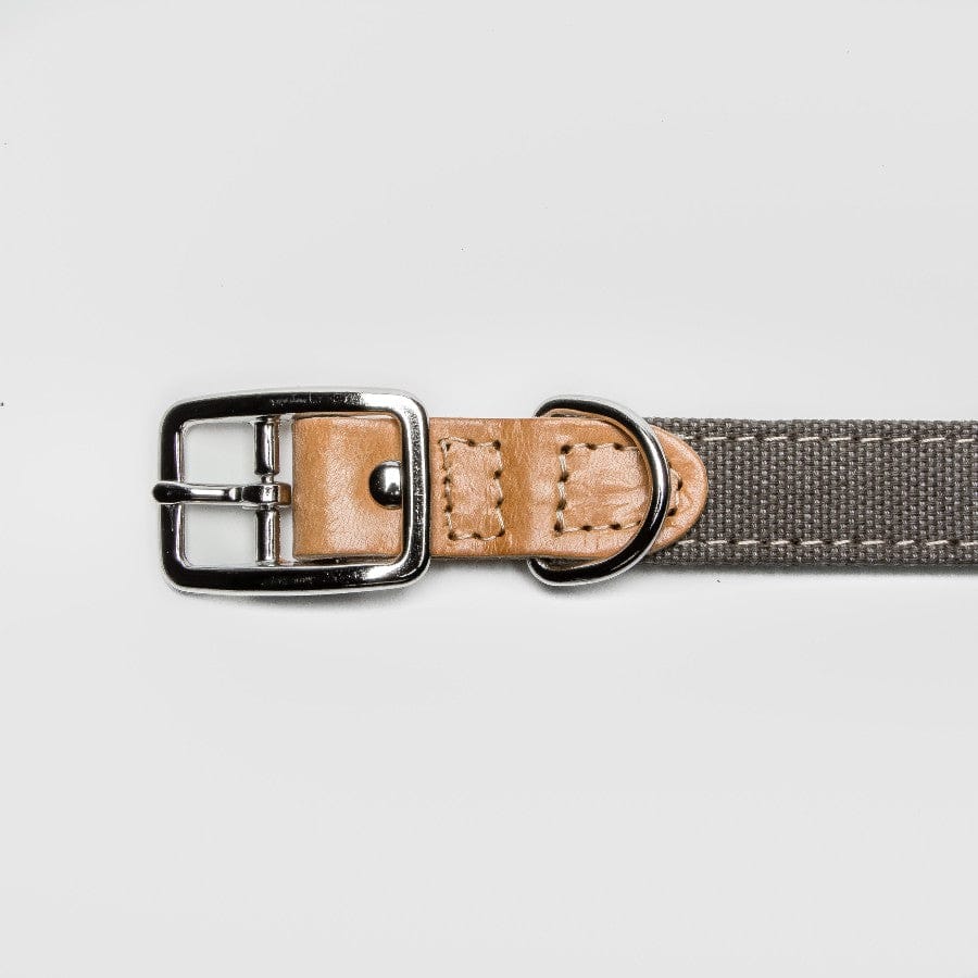 Kombination af bomuldslærred, læder og det rustfrie spænde, giver hundehalsbåndet et sporty look.