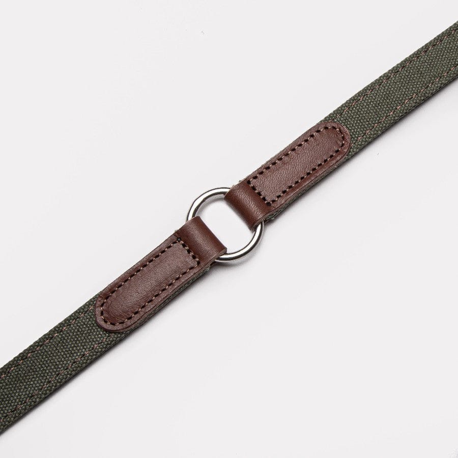 Kombination af bomuldslærred, læder og det rustfrie spænde, giver snoren et sporty look.