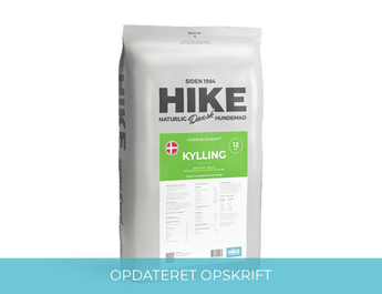 Det vigtigste er at få tilpasset portionsmængden til din hund. HIKE er et hundemad med fokus på animalske proteiner og et højt kødindhold. Det betyder at hunden behøver en mindre mængde mad, end med mange andre mærker. Vi anbefaler aldrig at give mere mad end du plejer, og start gerne med 10 % mindre.