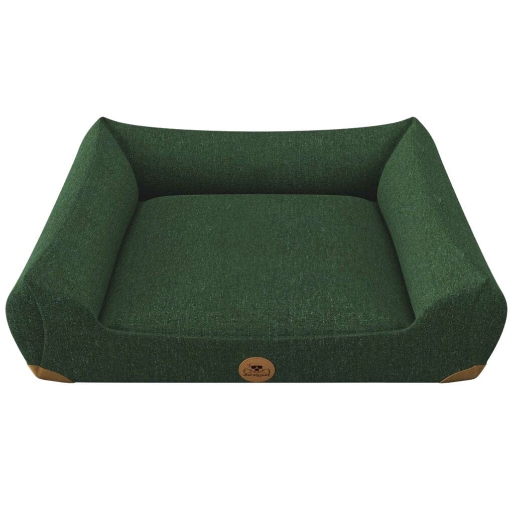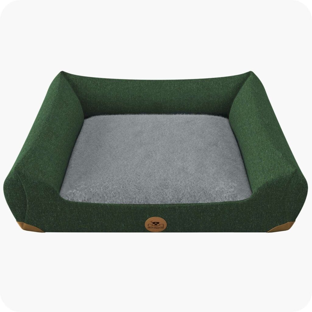 Denne skønne hundeseng er designet ud fra to principper: den skal være behagelig for din hund at sove i og den skal samtidig passe ind i en moderne indretning. Og det må man sige lykkes med den flotte, grønne farve og detaljer i vegansk læder.