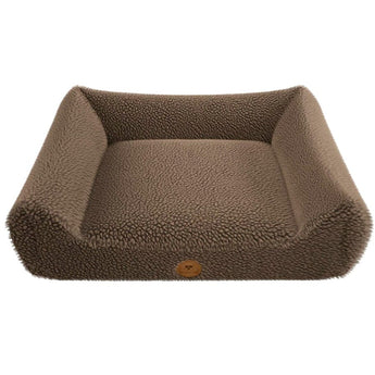 Hundesengen er betrukket med et lækkert bamsestof der føles behageligt for din hund at tage både korte og lange lure på.