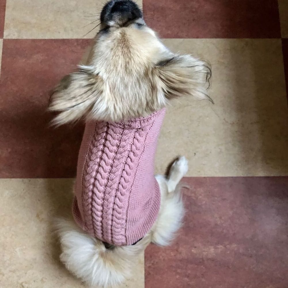 Lækker sweater der er strikket helt specielt til små hunderacer som cairn terrier, bichon frisé og gravhund.