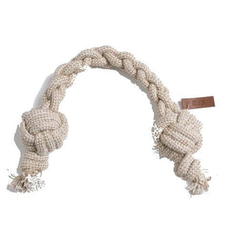 Hundelegetøjet er udarbejdet i en blanding af bomuld og hør, der giver dette utroligt slidstærke reb, og dermed det ideelle legetøj til huden.