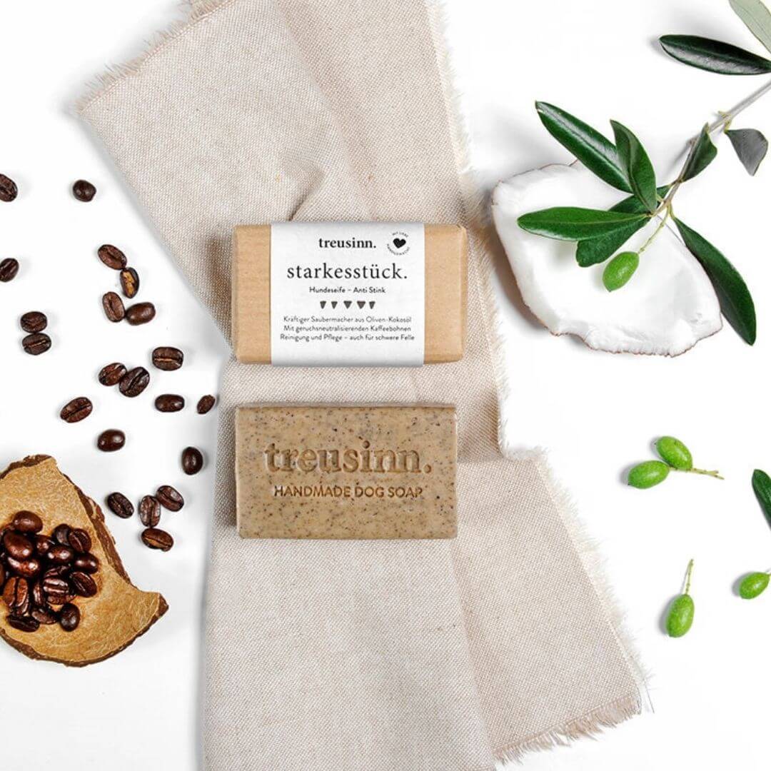 Hundesæben er tilsat kaffe der både stimulerer blodcirkulationen og neutraliserer dårlig lugt.